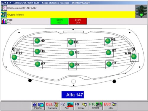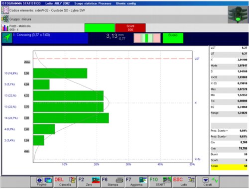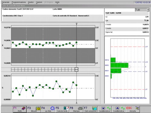 - Analisi statistica: carte di controllo X/R, X/S, test di normalità, analisi di capability, grafico di Pareto, etc.