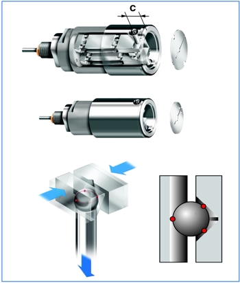 Sono disponibili anche tastatori in diamante (per alluminio tenero o in condizioni di forte usura), oppure rivestiti al cromo duro 1000 HV (per applicazioni su alluminio e sue leghe). I contatti di misura distano dal cielo dell’ogiva di una distanza C.
