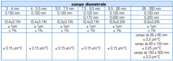 (1) svitando i tastatori fissati all'equipaggio tramite vite con heli-coil., i campi di misura possono essere ampliati fino ai valori espressi in tabella.