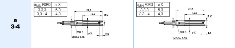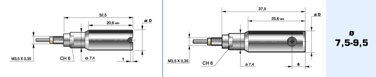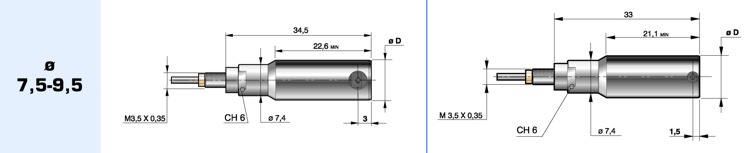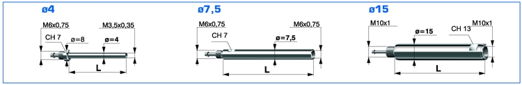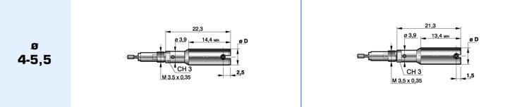 Sono fornibili con filetto da M3,5, M6 oppure M10 (attacco per la capsula) e diametro 8 oppure 3/8” (bloccaggio comparatore).