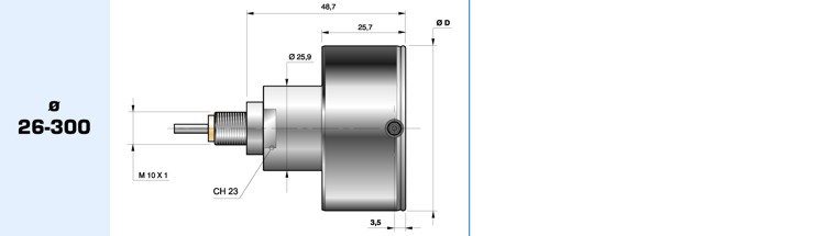 - Campo di applicazione da 3 a 300 mm.