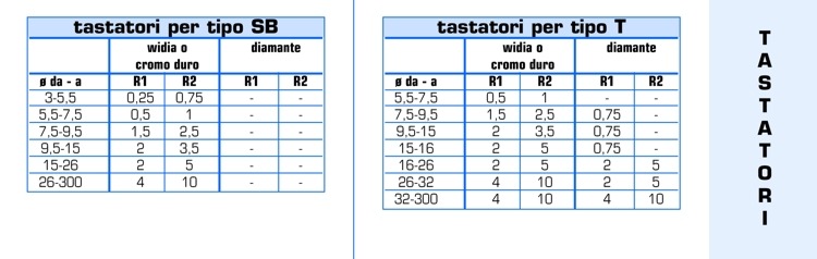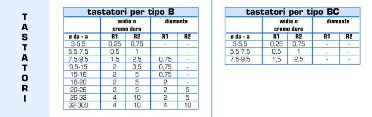 - Materiale del tastatore: Widia , Cromo duro o Diamante (si prega di verificare che il materiale ed il raggio scelti per il tastatore siano tra quelli disponibili).