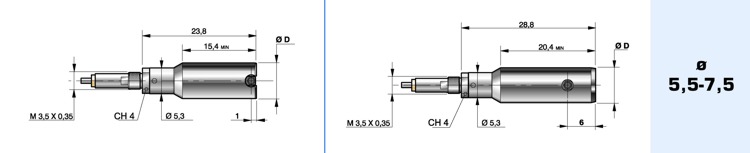 Nel caso di utilizzo di capsule con filetto da M3,5 con impugnature portasonda e portacomparatore è necessario interporre un adattatore di filetto.