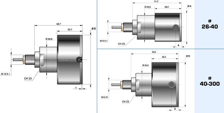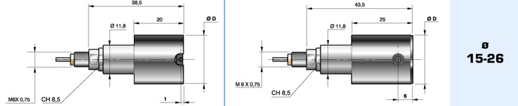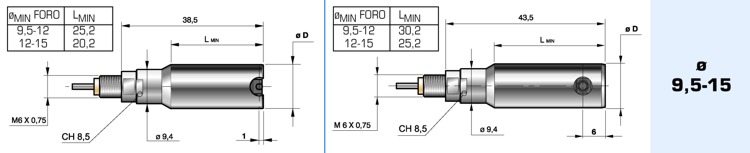 Sono fornibili con filetto da M6 oppure M10 (attacco per la capsula) e diametro 8 oppure 3/8” (bloccaggio comparatore).