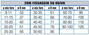 - Tipo capsula: B – BC – SB – T a secondo che il foro sia cieco o passante.