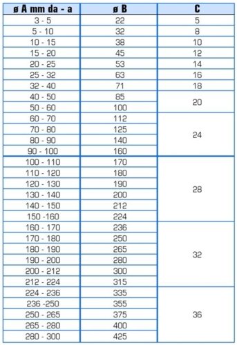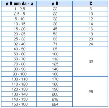 per Ø fino a 100 mm per Ø oltre 100 mm