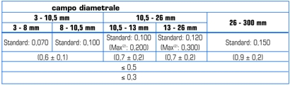 (2) Svitando i tastatori fissati all’equipaggio tramite Helicoli, i campi applicativi possono essere ampliati fino ai valori espressi in tabella.