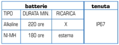 Il consumo delle batterie può così essere limitato al punto di richiedere la sostituzione delle stesse anche con cadenza annuale, programmando con attenzione la funzione di autospegnimento, ed in dipendenza dal tipo di batterie utilizzate, dalla frequenza dei controlli e dalla velocità di acquisizione impostata.