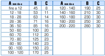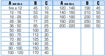 Il dimensionamento per gli scostamenti fa riferimento alle norme UNI 8953.