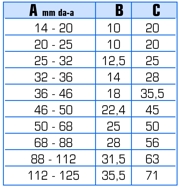 Il dimensionamento per gli scostamenti fa riferimento alle norme DIN 5840 – ANSI B 92.1.