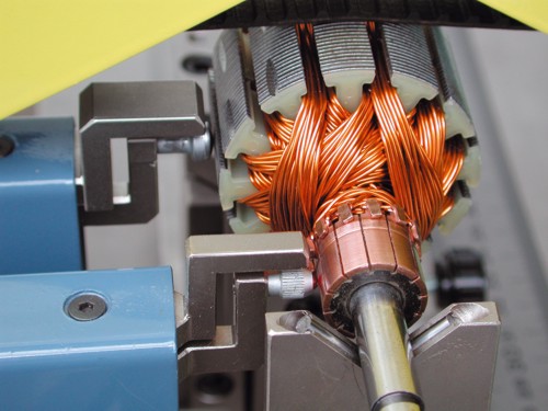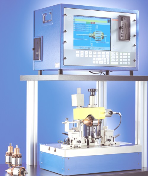 L'indotto è riferito tramite il suo alberino su supporti a V che riproducono le condizioni di lavorazione.