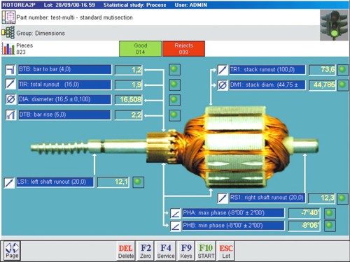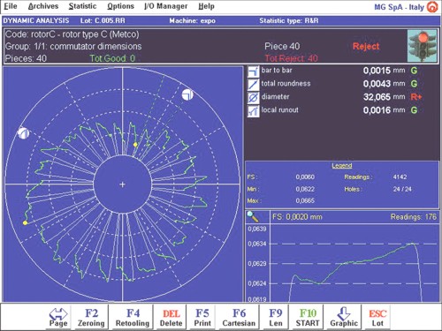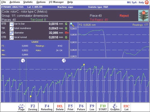 OSCILLAZIONE: E' calcolata considerando tutte le lame. La tolleranza tipica è 10 µm. Il valore indica se l'alberino dell'indotto è piegato e evidenzia problemi di montaggio. |